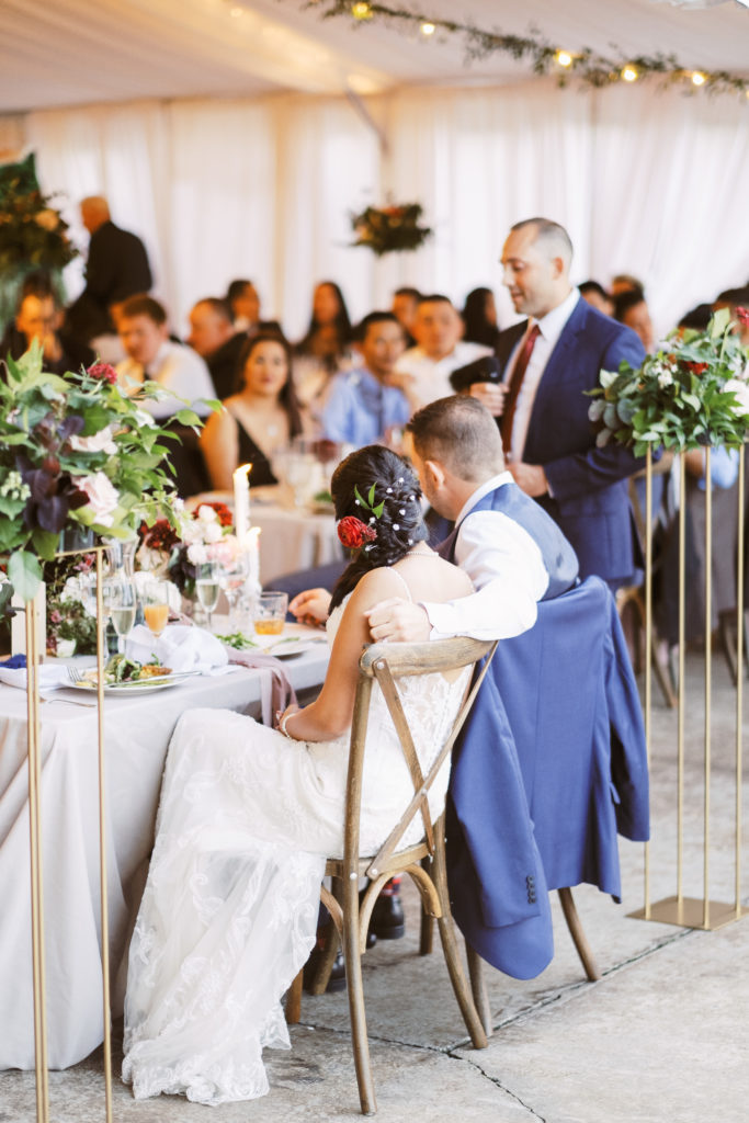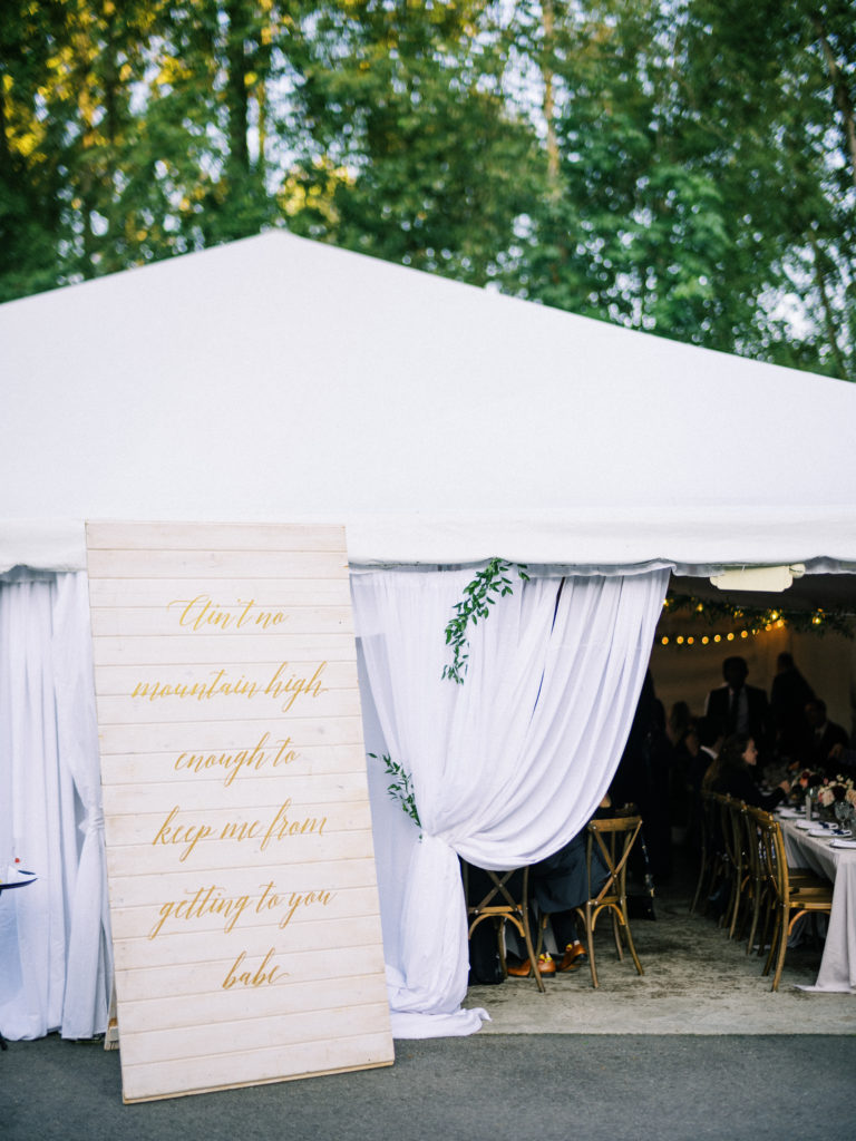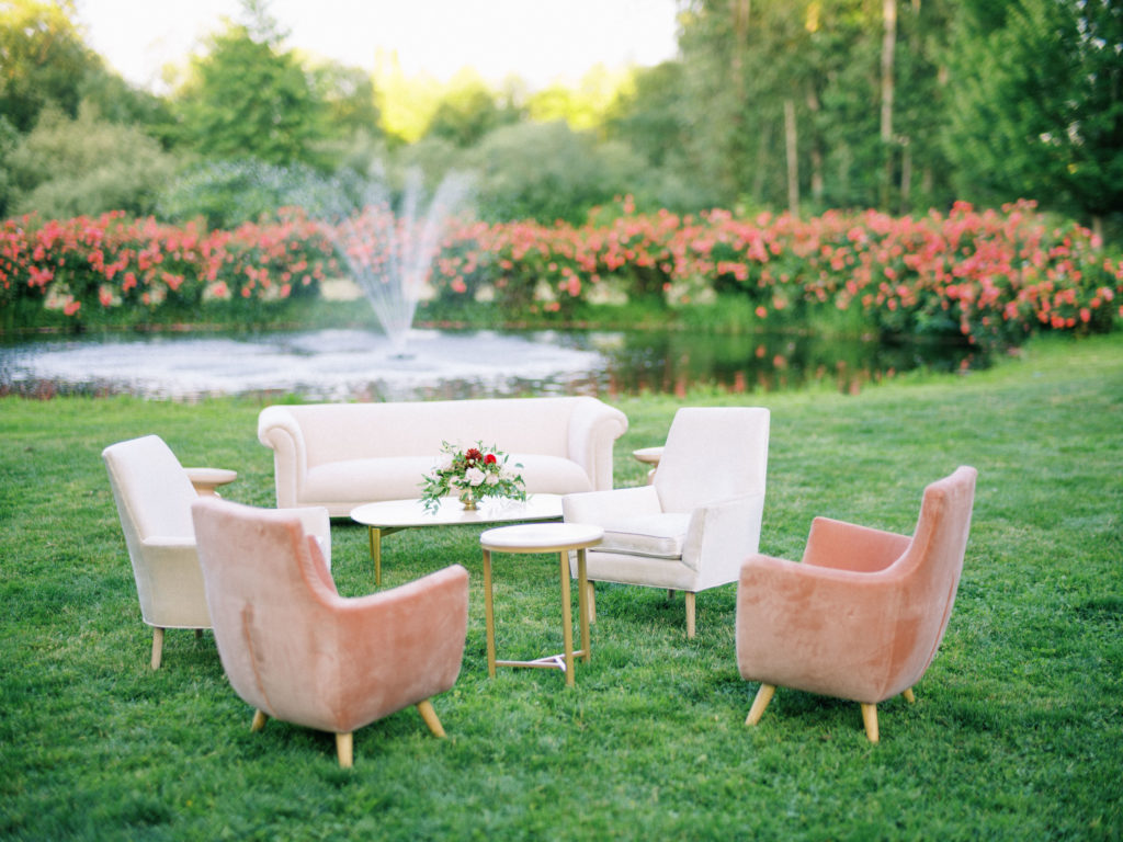 Soulee wanted elegant and romantic, Michael wanted rustic and warm. Rose Andrew Events merged two visions to create a unique and beautiful celebration set amidst Sanders Estate. We were happy to help by bringing in statement lounge furniture to design the look this fashionable couple wanted. Under the candlelit tent and cascading, foliage guests danced the night away.